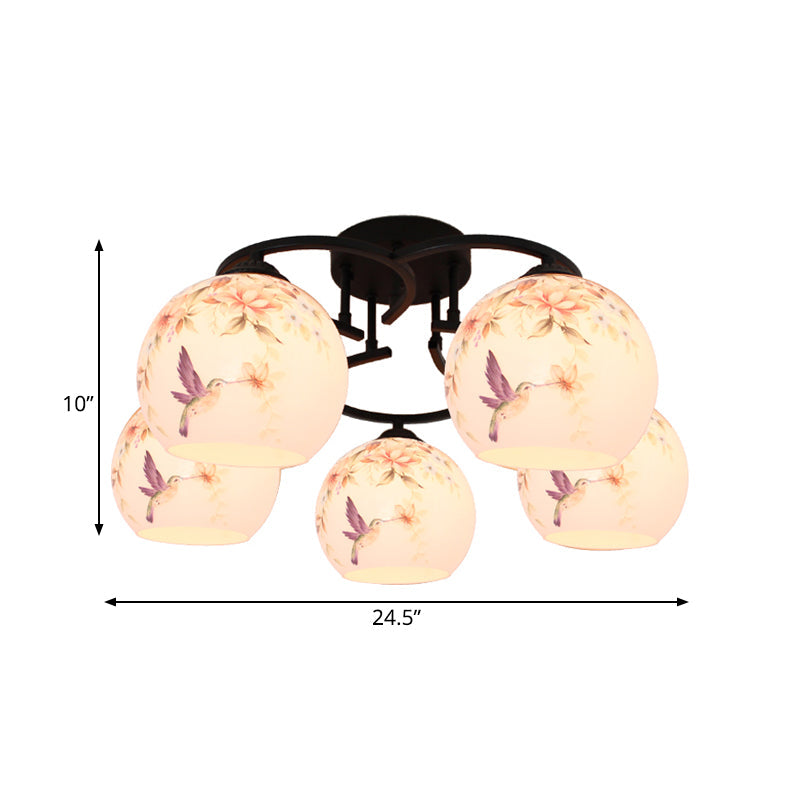 Mediterranean 5-Light Semi Flush Cut Glass Ceiling Lamp With Floral And Animal Motifs White / Bird