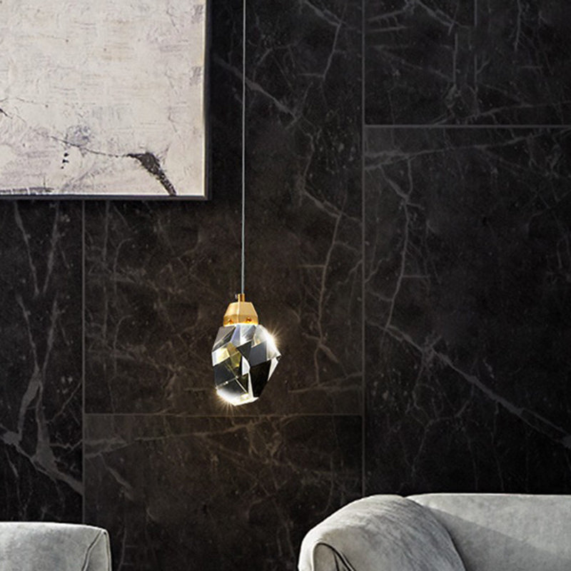 Crystal Stone-Shape Pendant Light Fixture Contemporary Style Down Lighting Pendant in Gold