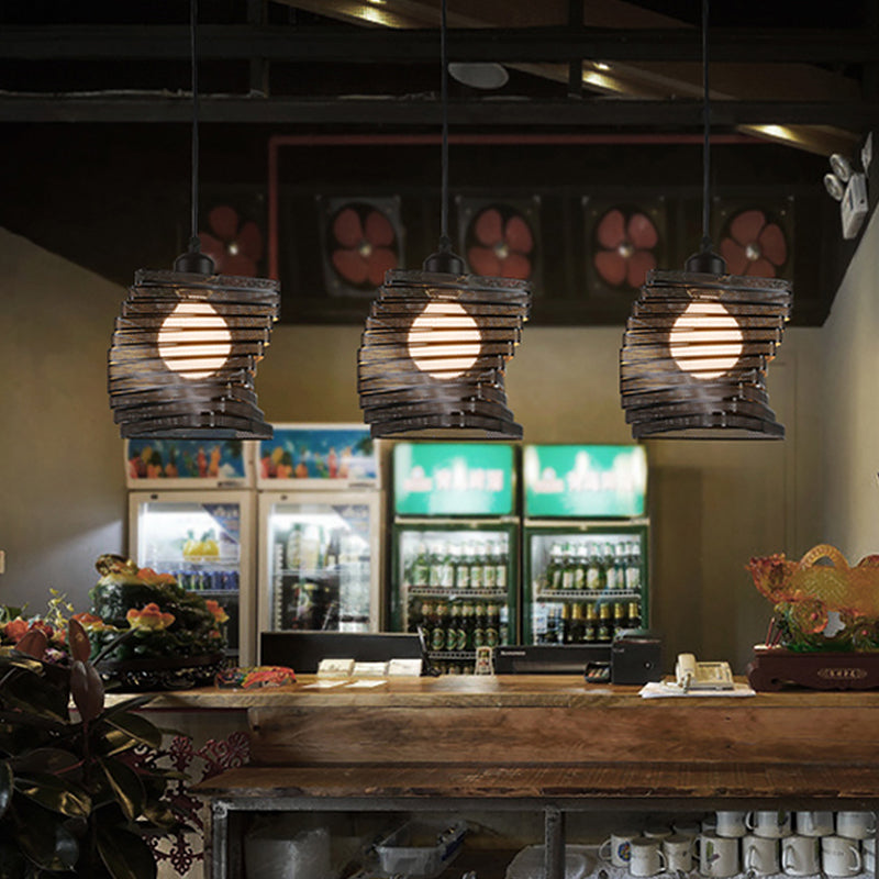Industrial Twist Mesh Pendant Light - Black/White Metal Hanging Lamp With Triangle Shade