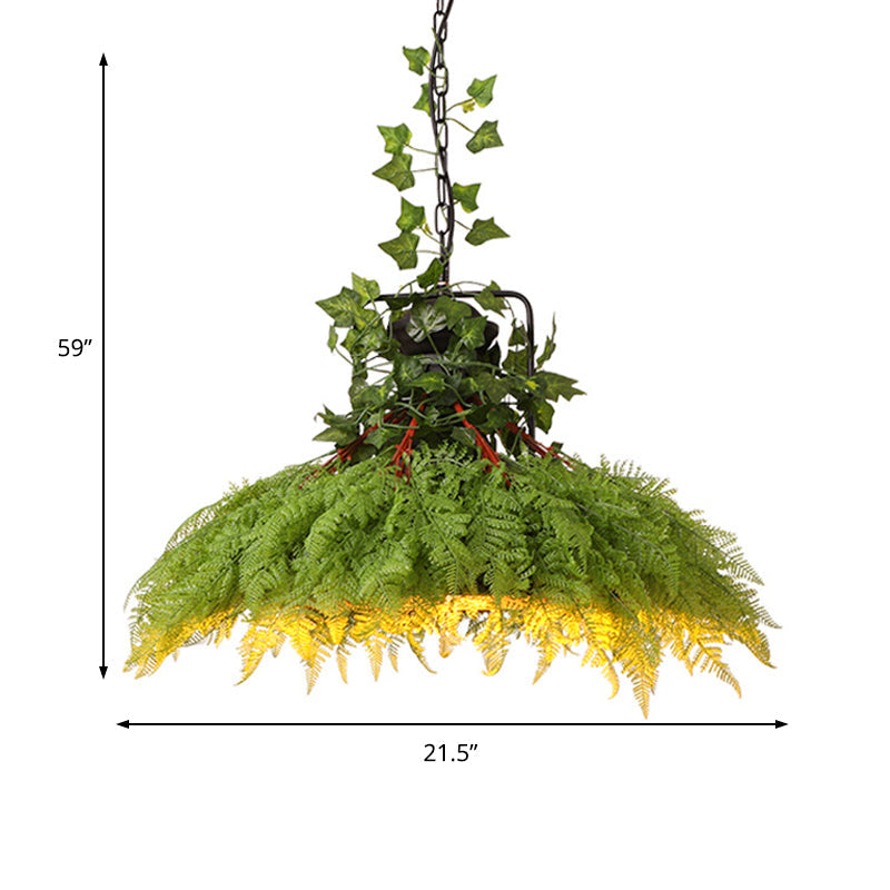 Antique Green Plant LED Pendant Lamp, Metal Head, Down Lighting - 14"/18"/21.5" Wide for Restaurant