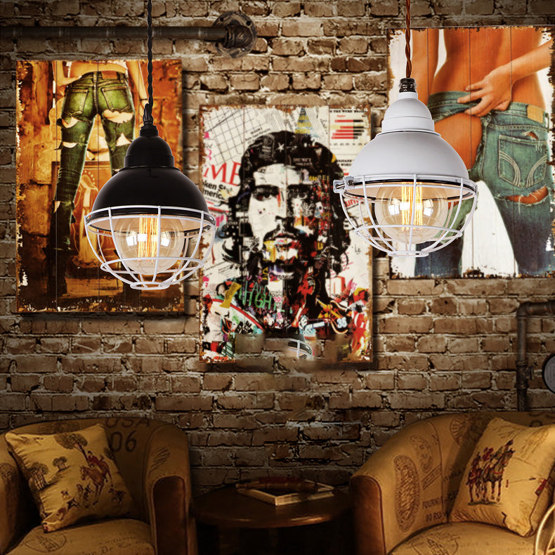 Double Bubble Indoor Pendant Light with Wire Frame, Farmhouse Metal, 1 Light - Black/White Ceiling Pendant