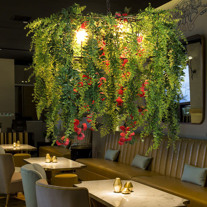 Add a touch of nature-inspired elegance to your space with the Elena Green Warehouse Wire Guard Chandelier Lamp. Crafted from durable iron, this hanging ceiling light features a unique green finish, reminiscent of lush foliage. The wire guard design adds an industrial flair, while the delicate plant decor brings a refreshing twist. With four bulbs, this chandelier lamp illuminates your room with a warm and inviting glow. Whether placed in a living room, dining area, or bedroom, it becomes a captivating focal point. Not only does it provide ample illumination, but it also adds a chic and stylish statement to your interior. Elevate your home decor with the Elena Green Warehouse Wire Guard Chandelier Lamp and bask in its enchanting ambiance.