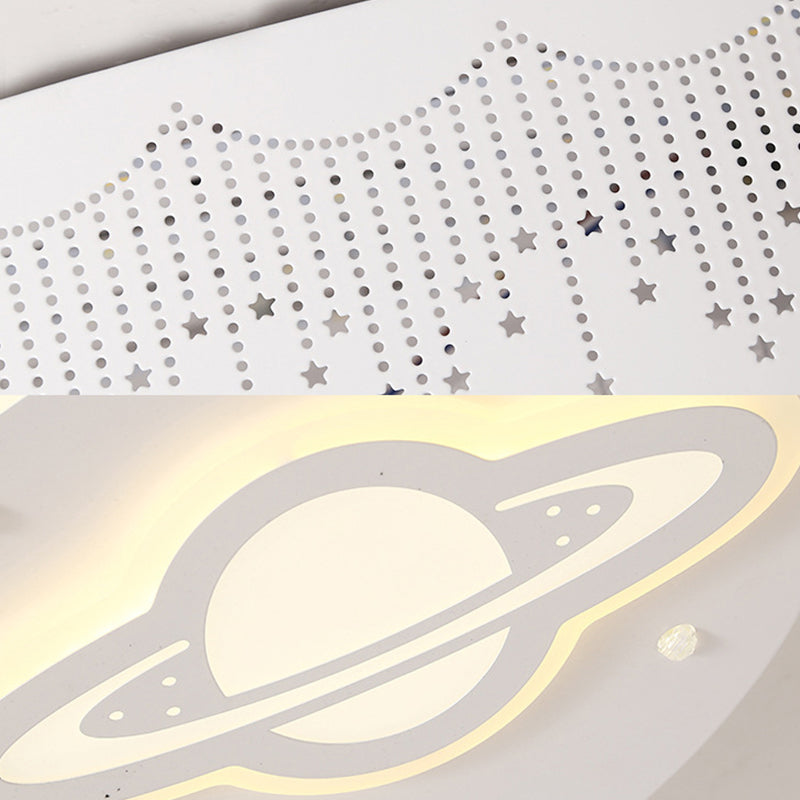 White Metal Round Pendant Light with Moon and Planet Design - Ideal Kids Chandelier for Living Room