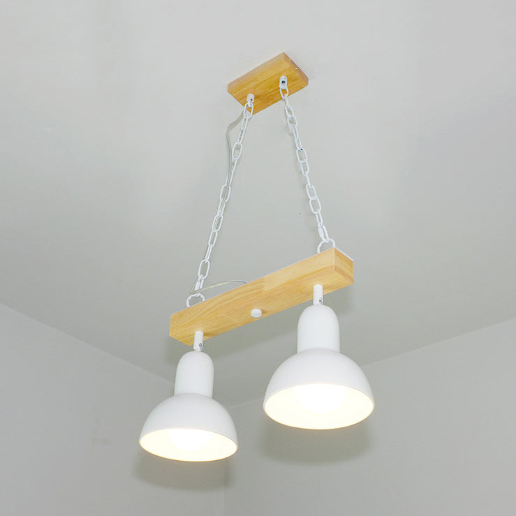 Modern Black and White Island Chandelier with Wooden Shade for Dining Table - 2/3 Lights