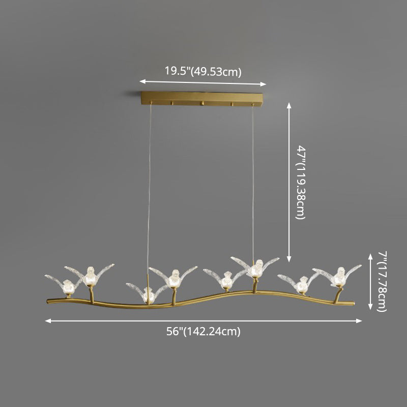 Twig Pendant Lamp With Bird Decor Gold Finish & Led Acrylic Island Light 8 /