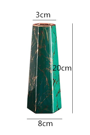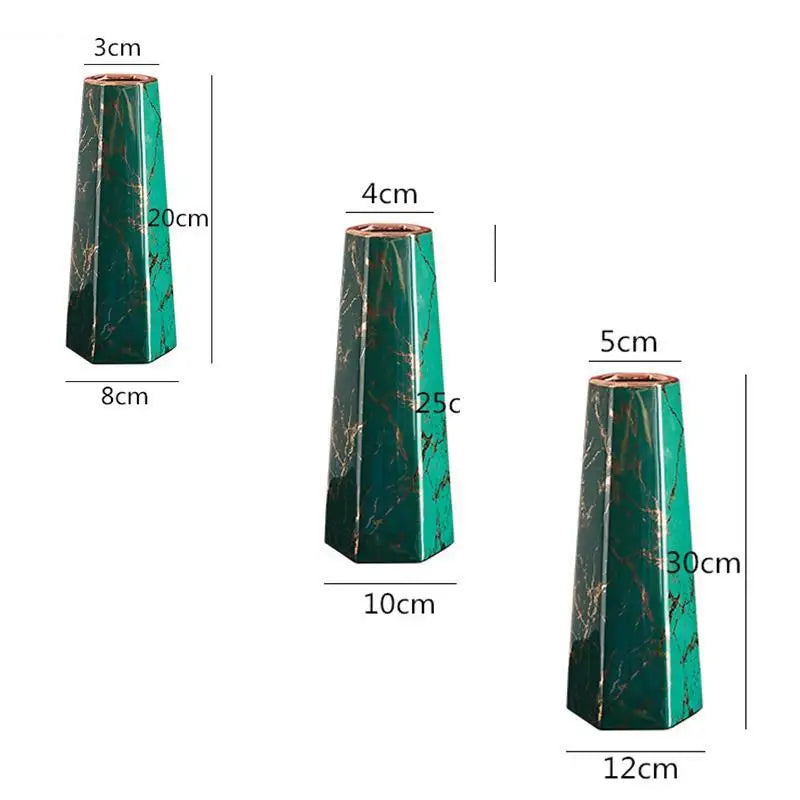 • Sophisticated Design: The marbled finish and hexagonal shape lend an air of refinement and luxury to these vases, making them a stylish addition to any room.