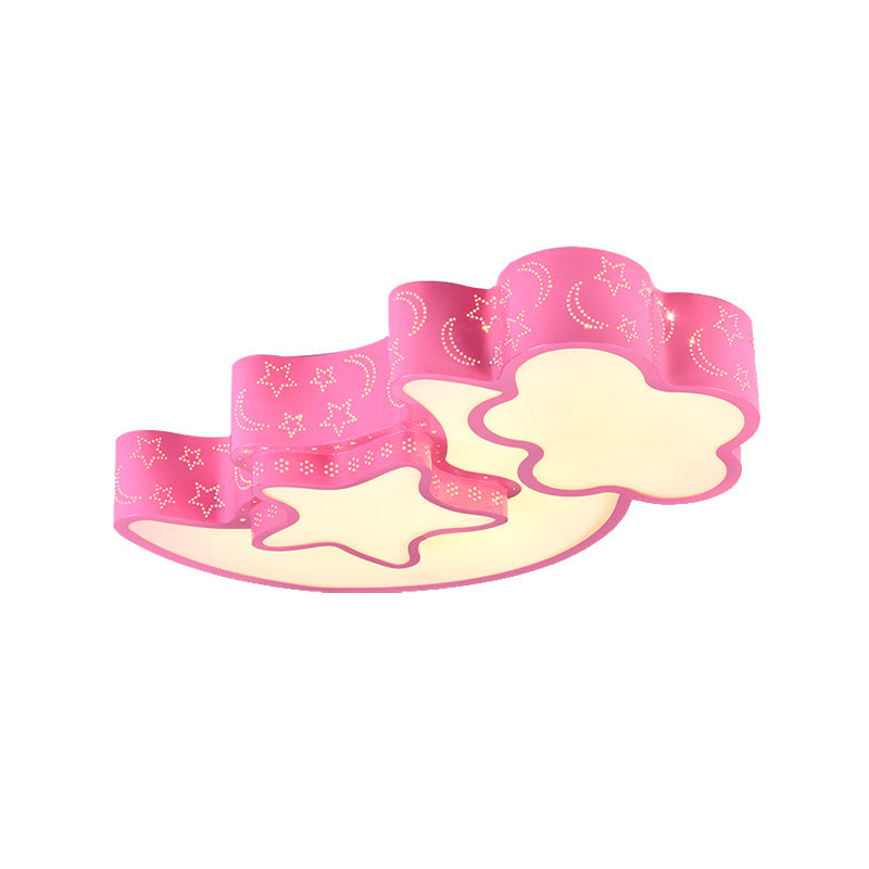 Contemporary Blue Moon Star Ceiling Light - Metal Flush Mount For Child Bedroom Pink / White