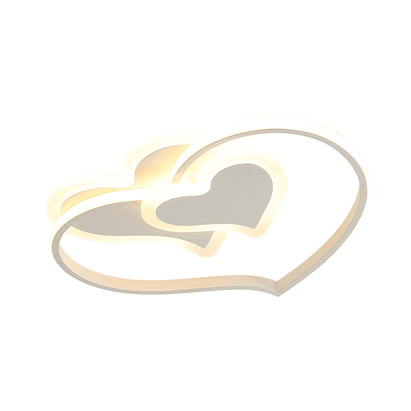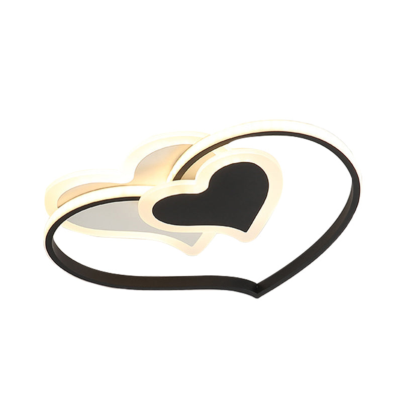 Modern LED Flush Mount Ceiling Light with Heart-Shaped Acrylic Shade - Black/White/Pink Finish for Bedrooms