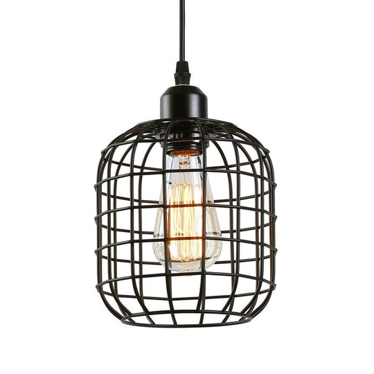 Retro Black Wire Cage Pendant Light for Restaurant - 1-Light Cylindrical Design