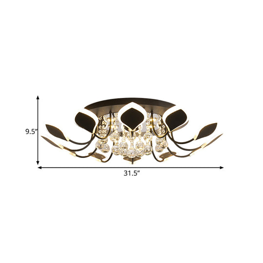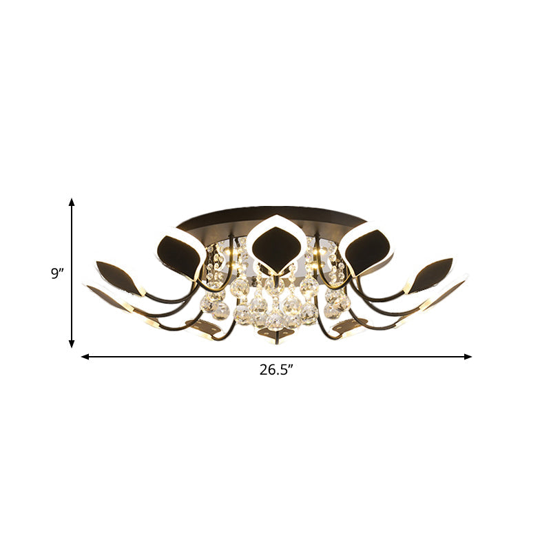Modern Black/White Crystal Ceiling Light with Raindrop Shade – 10/12 Heads Parlor Flush Mount Lamp, Warm/White Lighting