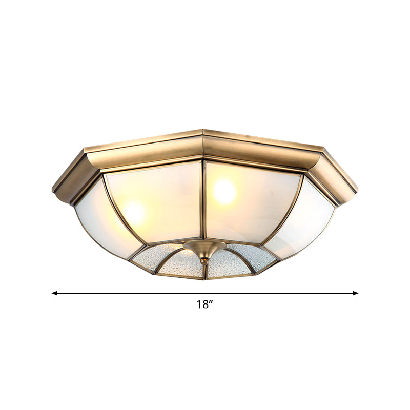 Colonial Bedroom Flush Mount Ceiling Light with Octagon Frosted Glass Shade in Brass - Available in 14"/18"/22" W and 3/4/6 Lights
