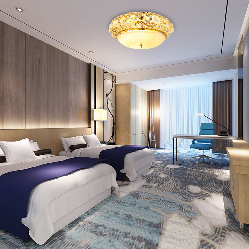 15"/19" Semi Mount Clear Crystal Ceiling Fixture with Opal Glass Diffuser in Gold - Modern Lighting Solution