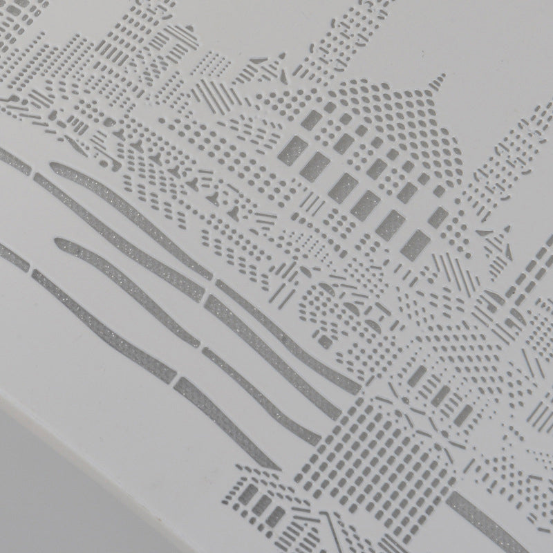 16.5/20.5 Modern White Carved Metal Drum Flush Lamp With Metropolis Scene - Led Ceiling Light