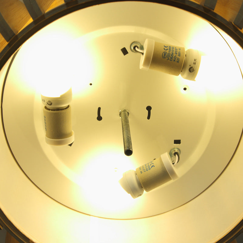 Bamboo Donut Flush Mount 3-Bulb Ceiling Chandelier - 17/21 Wide Traditional Wood Design