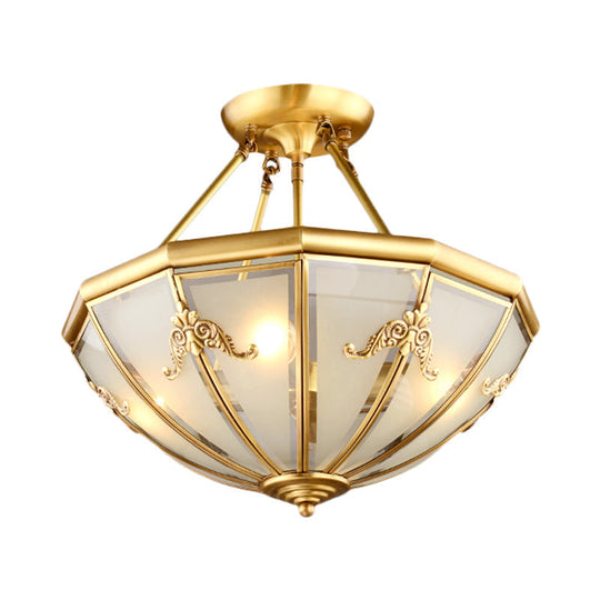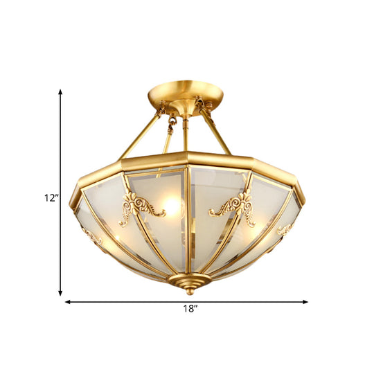 Traditional White Glass Brass Semi Flush-Mount Chandelier - 18/23.5 Width Dome Shape 4/6 Bulbs