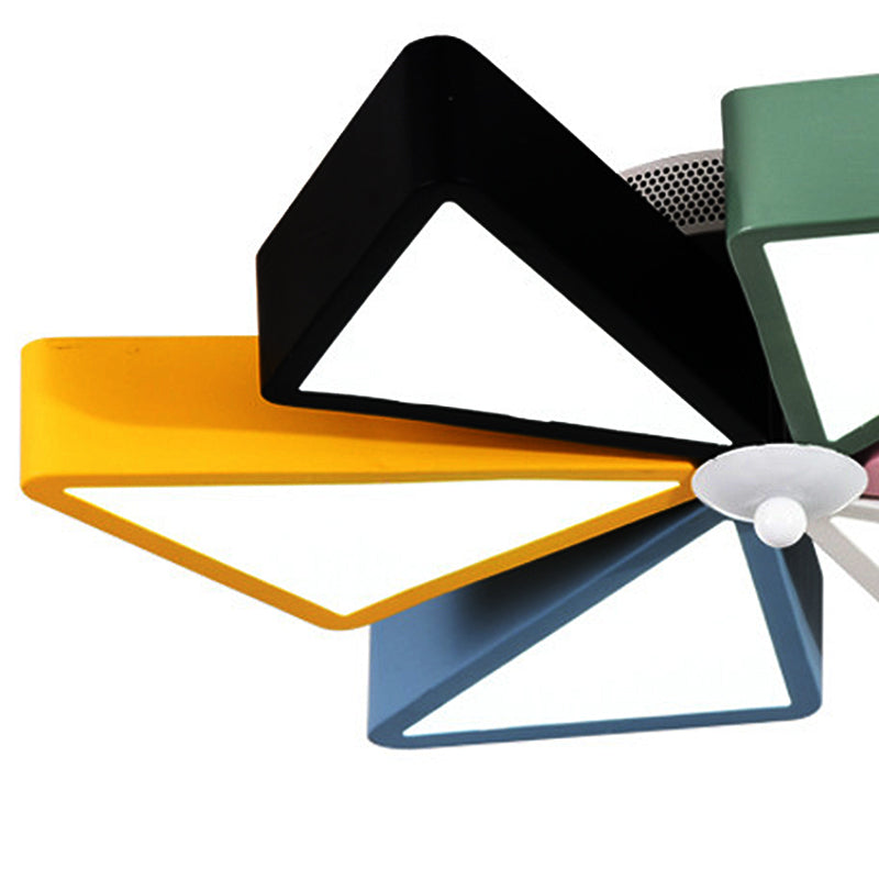 This 19.5"/23.5" W windmill flushmount light is modern and chic with a blend of blue, pink, black, white and yellow colors. This product is perfect to add a pop of color to any room. It is suitable for any room, from living rooms, bedrooms, and nurseries to even kids'reas. Enjoy the perfect blend of beauty and functionality with this round flushmount light!