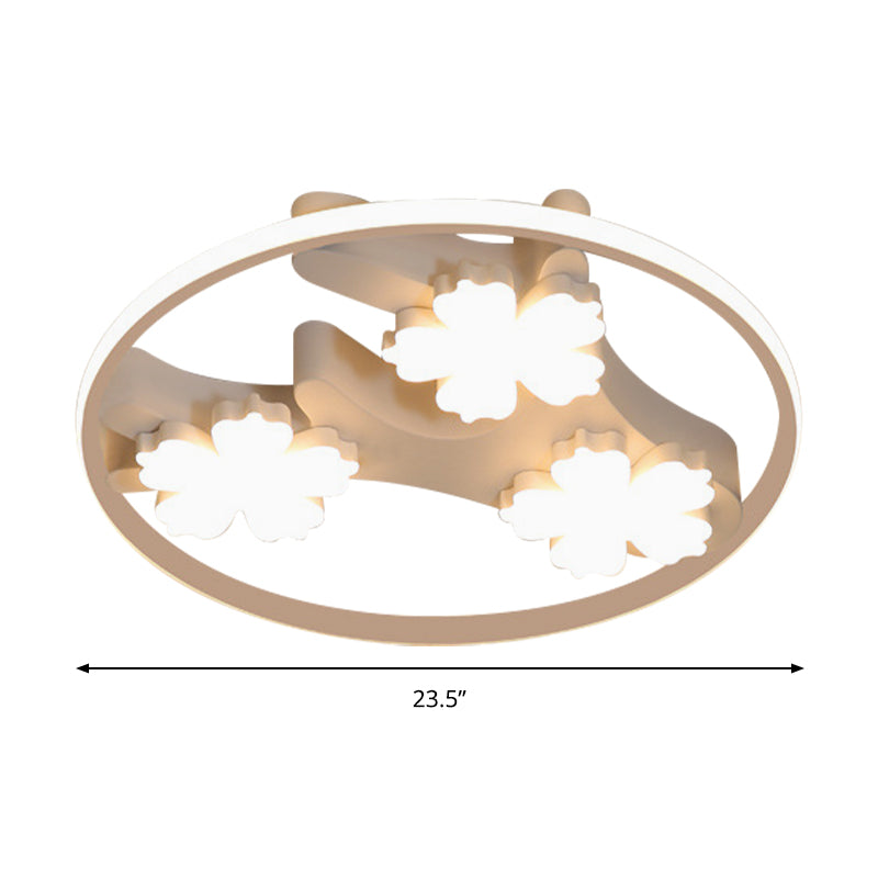 Black Led Flush Mount Ceiling Light With Blossom Decoration - Simple Style Wide Acrylic Ring