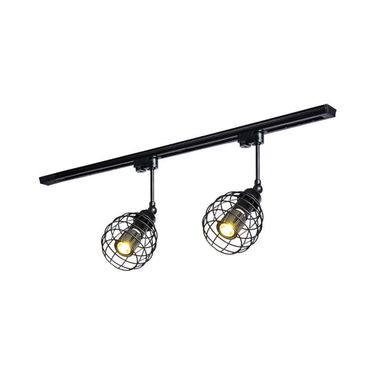 Semi-Flush Industrial Bistro Spotlight With Iron Cage In Black/White/Rust 2 / Black