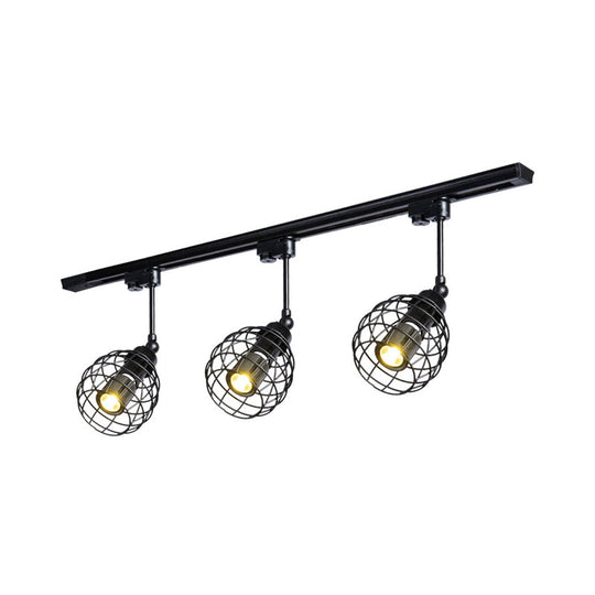 Semi-Flush Industrial Bistro Spotlight With Iron Cage In Black/White/Rust 3 / Black