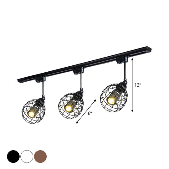 Semi-Flush Industrial Bistro Spotlight With Iron Cage In Black/White/Rust 3 / White