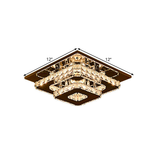 Contemporary 2-Tier Crystal Ceiling Fixture - 12"/26.5" Wide Stainless-Steel LED Flush Mount Lighting