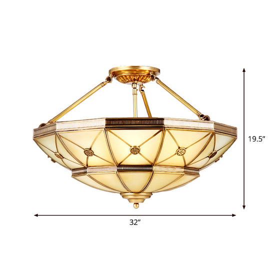 Traditional Brass Semi Flush Mount Light With Frosted Glass - 6/9 Lights 23.5/32 W / 23.5