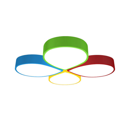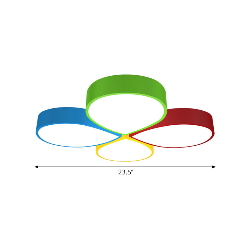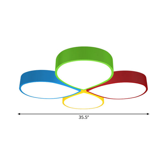 Macaron 4-Petal Flower LED Ceiling Flush Mount Lamp - 23.5"/35.5" Width - Red-Yellow-Blue-Green Colors - Metallic Finish - Ideal for Kindergarten - White Light + 3 Color Options