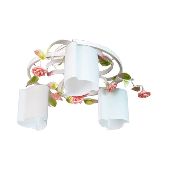 Romantic Pastoral Floral Ceiling Flush Chandelier - 3/5-Head White/Yellow With Frosted Glass Semi