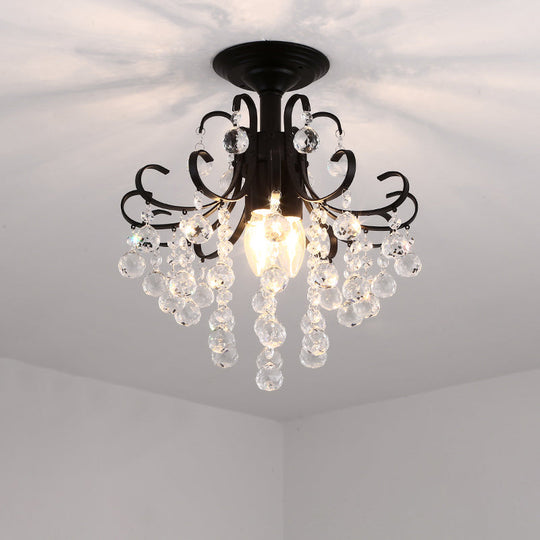 Vintage Swirl Crystal Semi-Mount Ceiling Light (Black) - 3-Bulb For Foyer