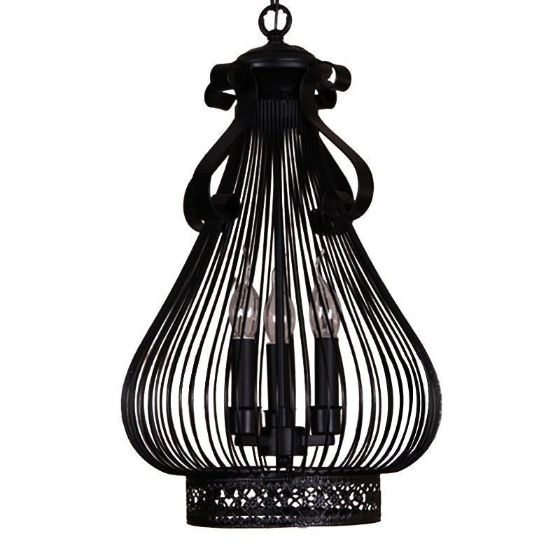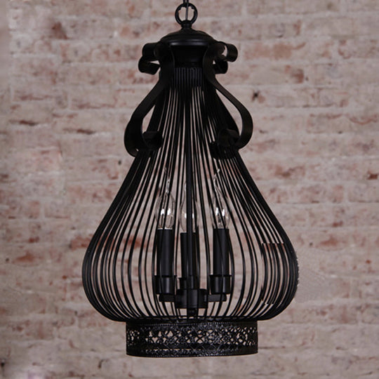 Black Metal Gourd-Like Pendant Chandelier - 3-Light Loft Style Candle Hanging Lamp Kit