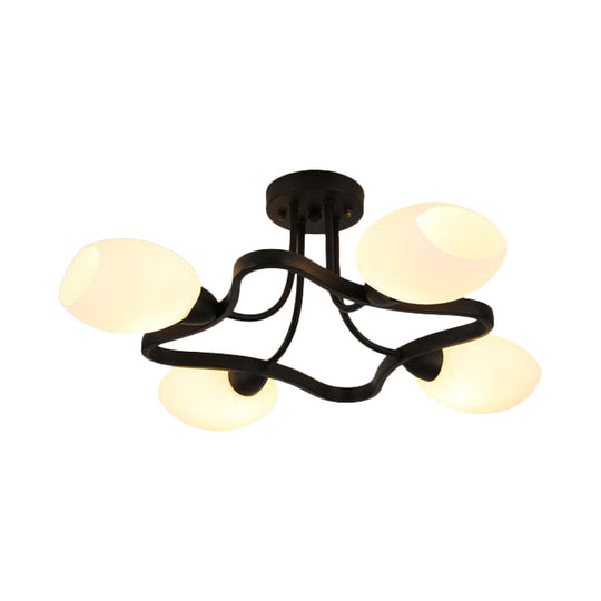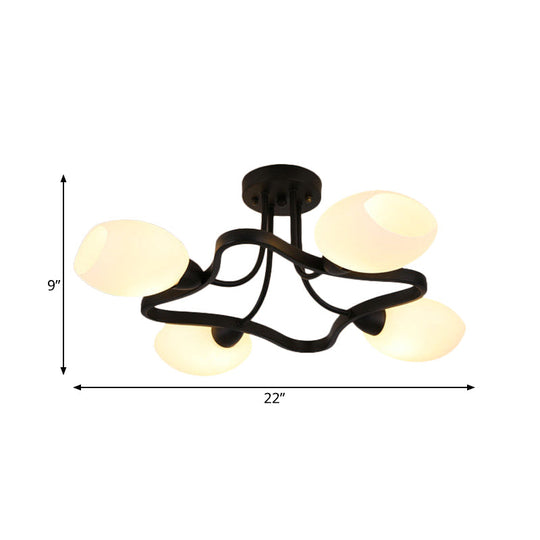 Rustic Black Opal Ball Glass Ceiling Mount Chandelier - 4/6 Lights Flower Semi Flush 4 /