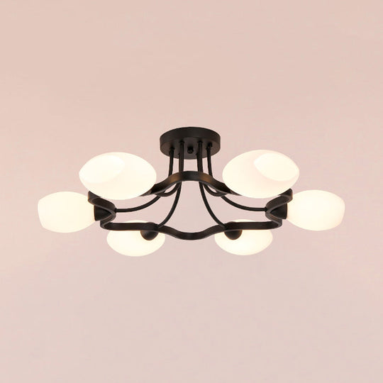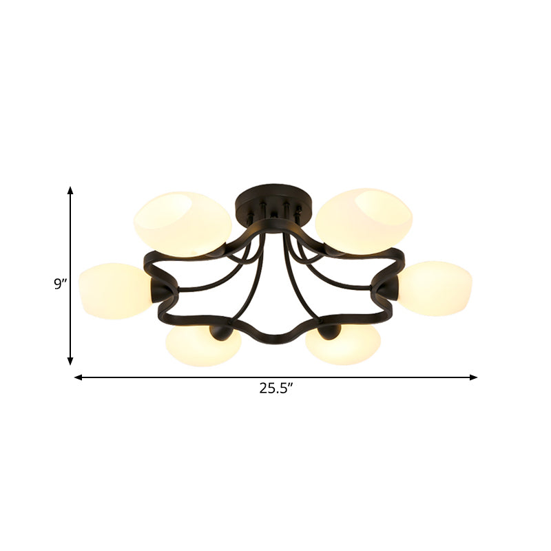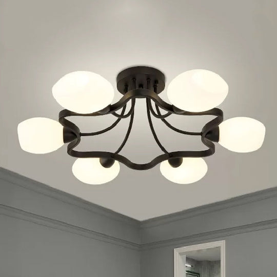 Rustic Black Opal Ball Glass Ceiling Mount Chandelier - 4/6 Lights Flower Semi Flush 6 /