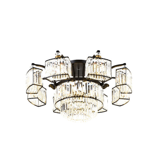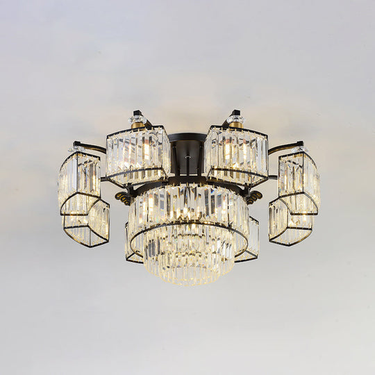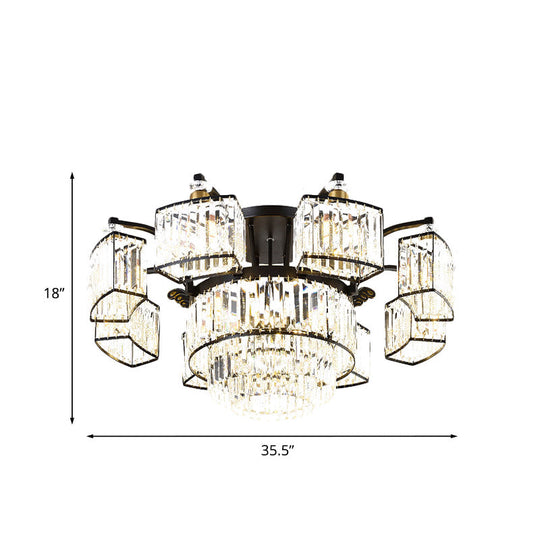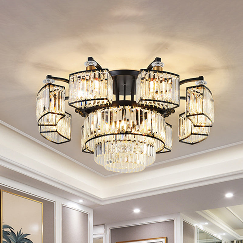 Modern Black Bedroom Flushmount with Crystal Block Shade - Semi-Flush, 9/12 Head Design