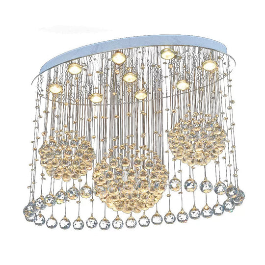 Bring life and luxury to your home by adding this 9 Bulbs Oval Flush Ceiling Light Fixture Modern Stainless Steel Crystal Drape Flushmount Light for Bedroom. This beautiful statement piece is sure to be a showstopper in any room! It will add a modern vibe and an updated look to your home, so don’t hesitate to make this light fixture part of your home décor. With its high-quality construction and versatile design, this light is sure to become a favorite.