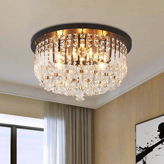Contemporary Black Crystal Cascade Ceiling Light For Bedroom - 9-Light Flush Mounted Fixture / A