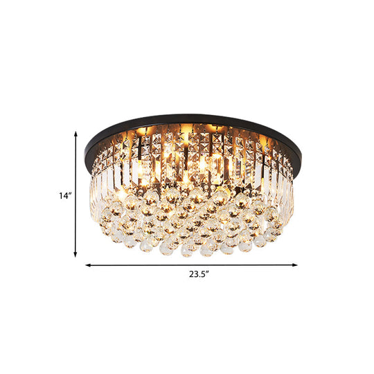 This sophisticated and stylish 9 Lights Bedroom Flush Light Fixture Contemporary Black Ceiling Lighting with Cascade Crystal Shade is the perfect addition to any modern home. Its sophisticated black finish combined with the elegantly cascading crystal shade will add sophistication and elegance to any interior. Its flushmount fixture type is designed to fit perfectly in any room of the house. It features a size which ranges from 20 to 24 inches and a Fixture Width of 23.5 inch while its fixture height is 14 inches.