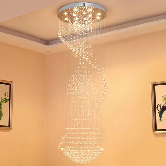 94.5" High Spiral Flush Mount Crystal Ceiling Light - Modernist Stainless Steel 13-Light Fixture