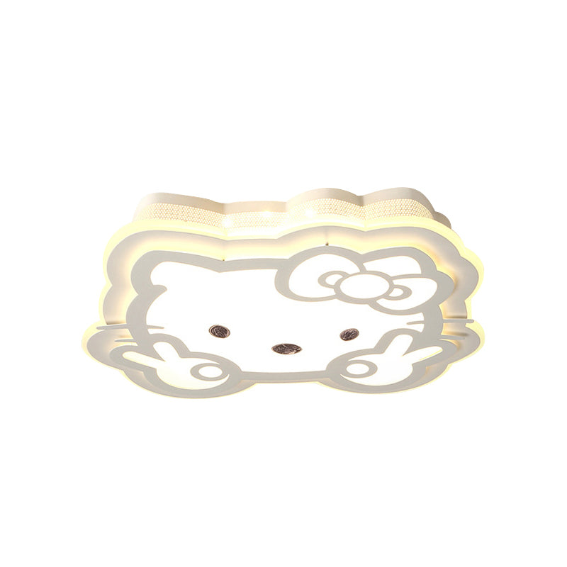 Cartoon Led Ceiling Lamp - Acrylic Peace Sign Kitty Mount Light For Baby Girls Room White / 16 Warm