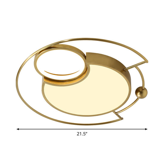 Nordic Led Semi Flush Mount Ceiling Fixture In Gold - Acrylic Rounded Light With Warm/White