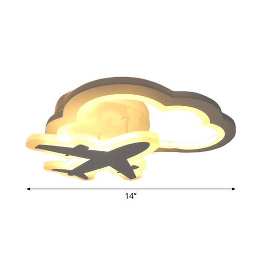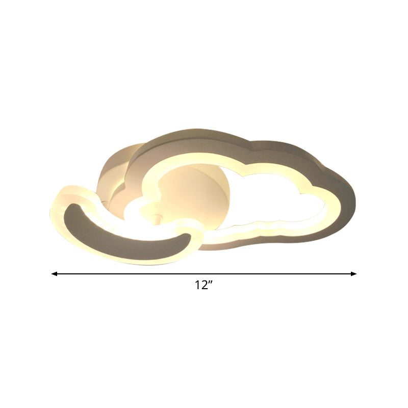 White Nordic LED Semi-Flush Foyer Lamp with Airplane, Moon, and Cloud Design
