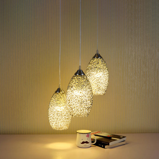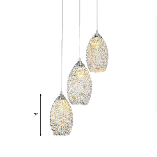 Contemporary Aluminum Oval Pendant with 3 Bulbs – Chrome Ceiling Light for Dining Room