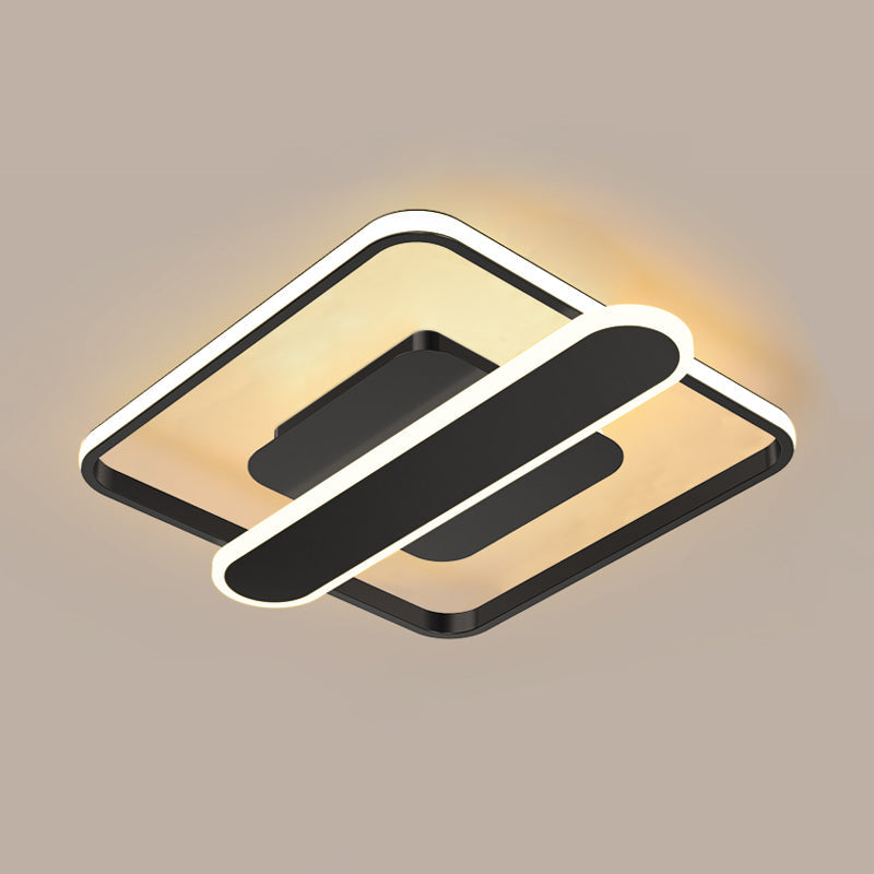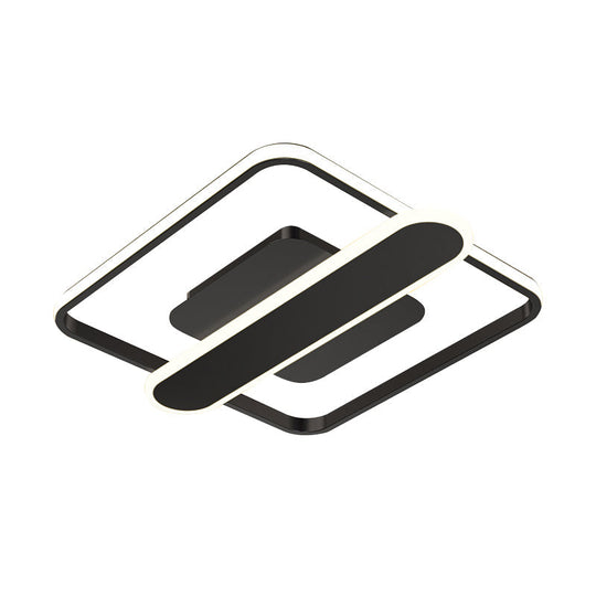 Contemporary Aluminum Square Frame Led Ceiling Lamp - Black/Gold/White 16.5/20.5 Inches Wide Black /