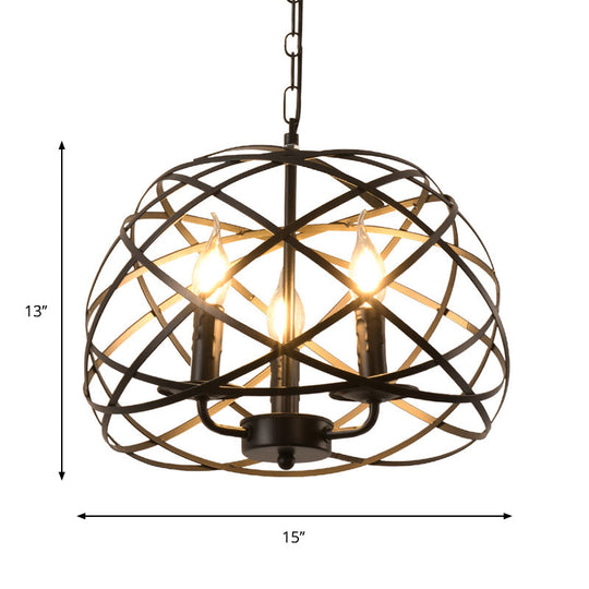 Vintage Bird Nest Drop Pendant With 3 Bulbs - Metallic Hanging Chandelier In Black