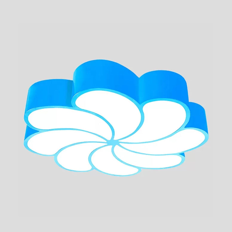 The Bedroom 18"/22" Petal Flush Mount Light Acrylic Cartoon LED Ceiling Lamp in Red/Yellow/Blue/Green, Third Gear/White Light is a ceiling light that is 18" or 22" in diameter, 3.5" in height, and includes a bulb. The lamp is available in red, yellow, blue, and green, with a white third gear light setting. The style of the lamp is kids, and the material is cast iron. The voltage is either 110-120V or 220-240V, and the bulb base is SMD. Finally, the lamp type is LED.