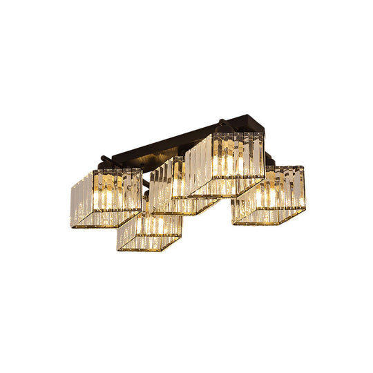 Modern Black Crystal Prism Flush Chandelier With 4/5 Bulbs - Semi-Mount Lighting