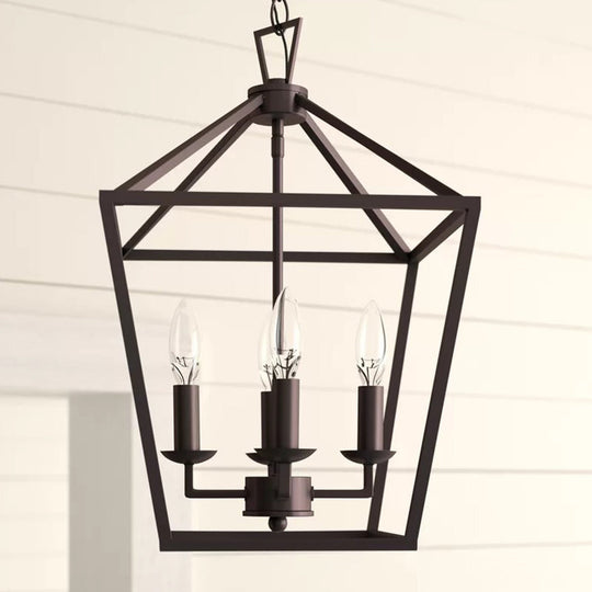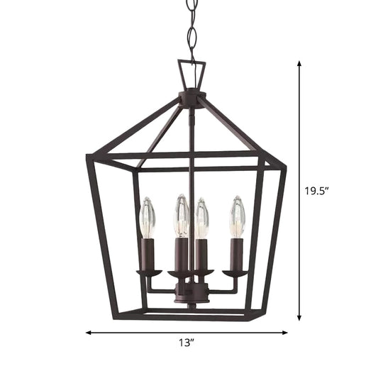 Vintage Iron Trapezoid Pendant Light Fixture With 4 Bulbs For Kitchen Ceiling Black
