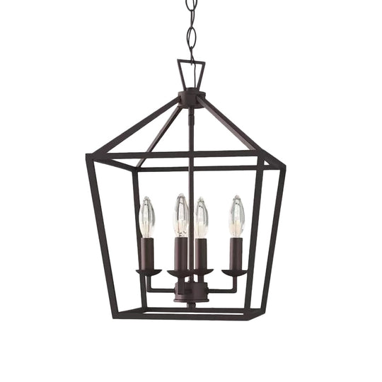 Vintage Iron Trapezoid Pendant Light Fixture With 4 Bulbs For Kitchen Ceiling