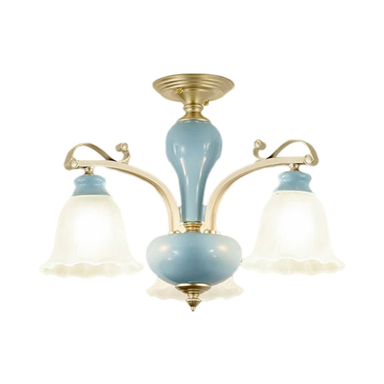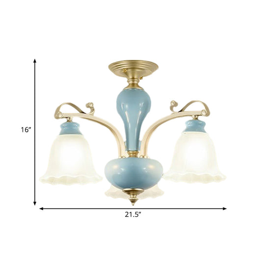 Rural Style Cream Glass Blossom Chandelier Lighting With Blue 3/6/8 Bulbs - Pendant Light 3 /