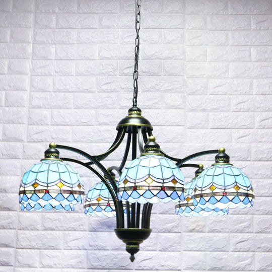Blue Stained Glass Tiffany Chandelier - 6-Light Adjustable Chain 23.5 Wide Hanging Light For Living