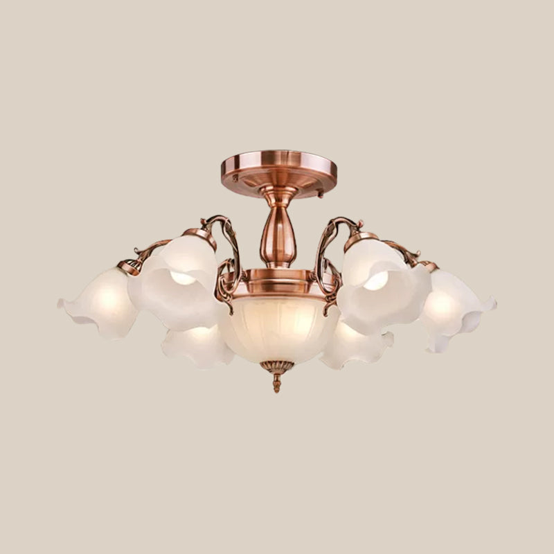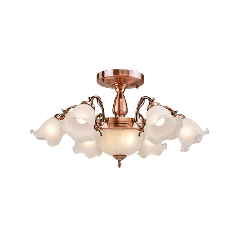 Rustic Opal Frosted Glass Ruffled Ceiling Mount Chandelier - Bronze/Copper With 8 Bulbs Copper